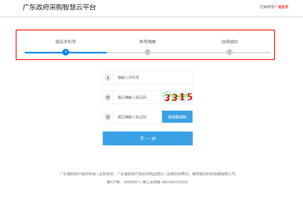 1、登錄廣東省政府采購網