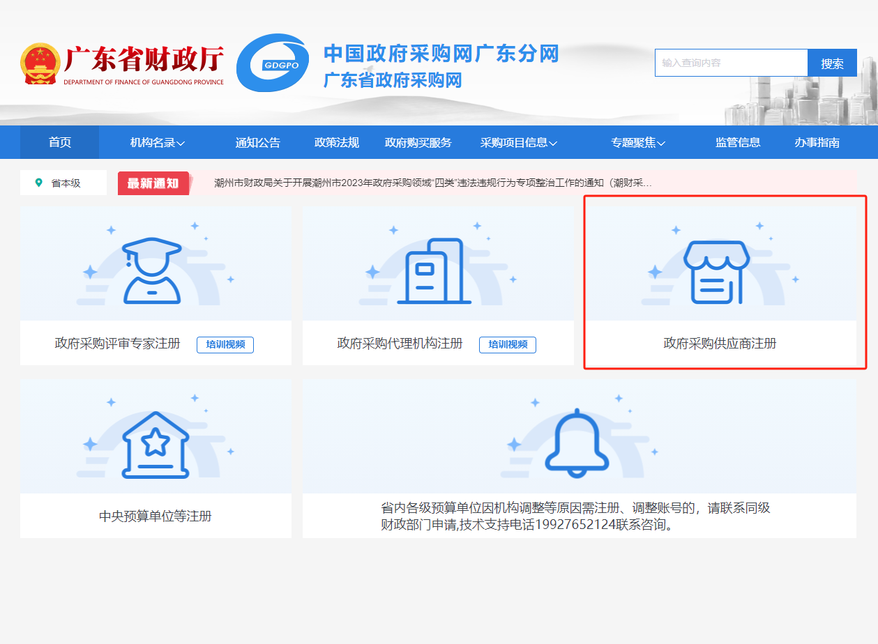 參與政府采購項目的投標人未在廣東省政府采購網注冊,在報名成功后最遲必須于開標前一日登錄廣東省政府采購網進行注冊(網址:https://gdgpo.czt.gd.gov.cn/),注冊過程中如有任何疑問,可撥打云平臺咨詢服務熱線: 020-88696588。